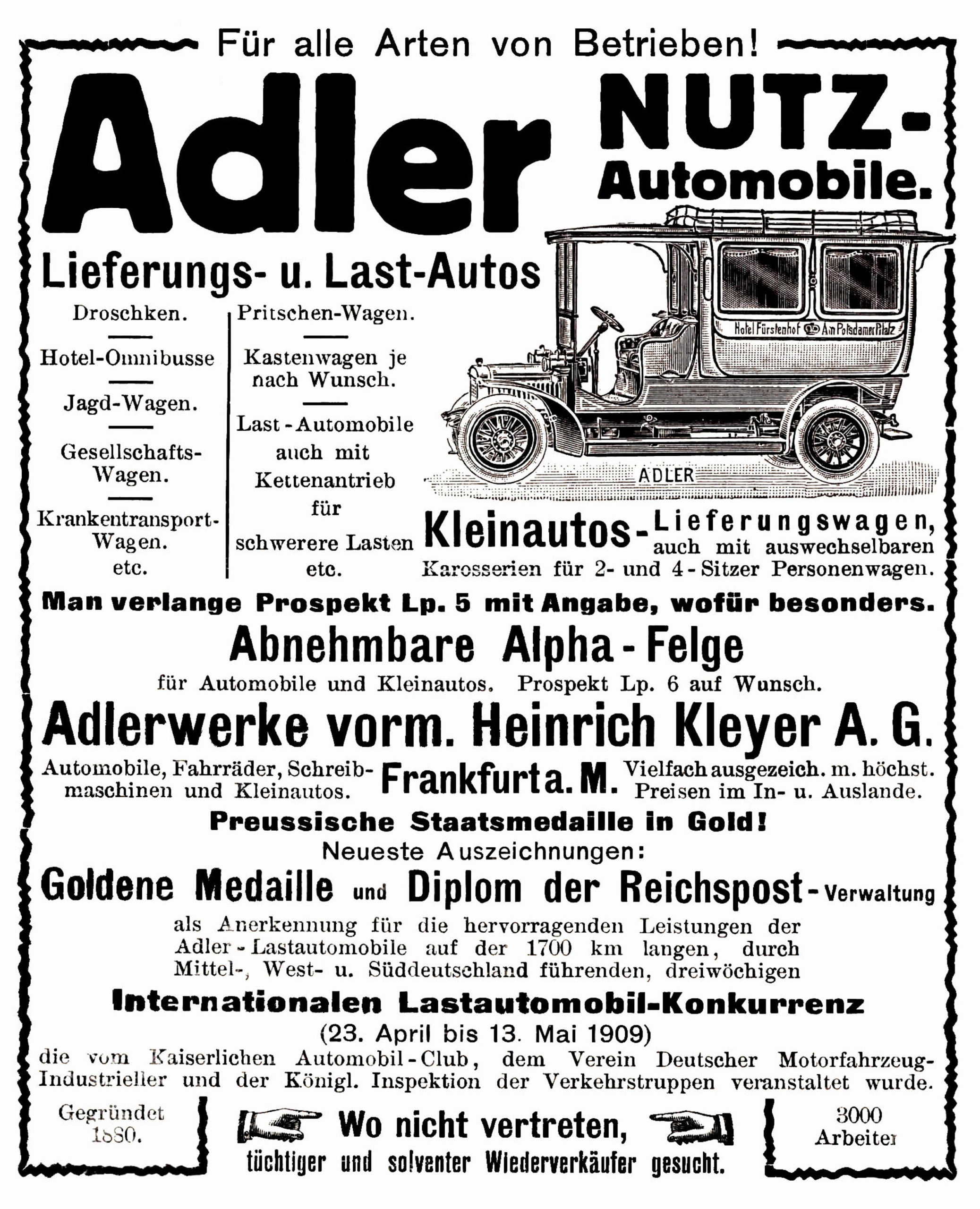 Fr. Opel aus Rüsselsheim, eine bekannte Sporting- Lady, ist jüngst wieder aus einem Tourenwettfahren mit dem von ihr gelenkten Automobil als Siegerin hervorgegangen.