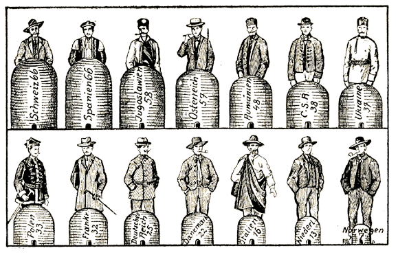 Im Jahrbuch 1909 des „Bureau des Longitudes“ in Paris werden auf Grund der neuesten Arbeiten einige Zahlen der  geographischen Statistik zusammengestellt, von denen die größten auf verschiedenen Gebieten hier wiedergegeben seien: Zunächst die Größe der Erdteile: Europa          10,100.000 Quadratkilometer,    437 Mill. Einwohner…… 43 pro Quadratkilometer Afrika            31,500.000 Quadratkilometer,    126 Mill. Einwohner….....3 pro Quadratkilometer Asien             41,600.000 Quadratkilometer,    851 Mill. Einwohner…..20 pro Quadratkilometer Ozeanien                                                            51 Mill. Einwohner………4 pro Quadratkilometer Nordamerika  26,000.000 Quadratkilometer,  116 Mill. Einwohner……..4 pro Quadratkilometer Südamerika   18,500.000 Quadratkilometer,     45… Read more.