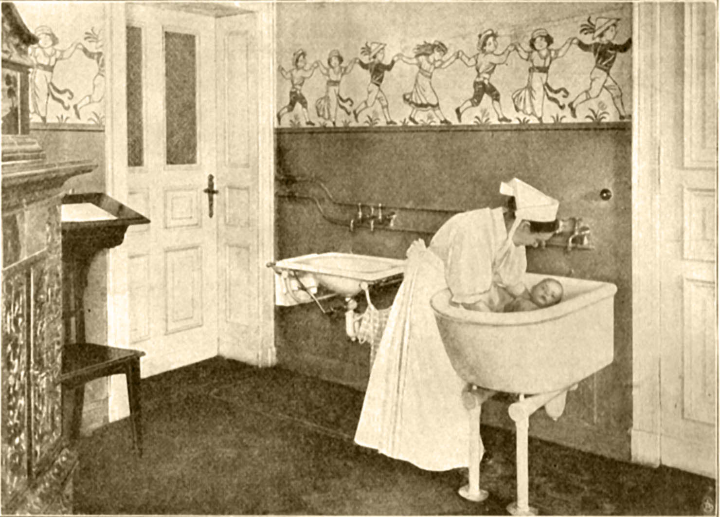 Ob eine Verwendung in ländlichen Distrikten stattfindet, wie z. B. bei uns in Ostpreußen bei der Bekämpfung der granulösen Augenkrankheit seit Jahren mit bestem Erfolge geschieht, war nicht zu erfahren. In den Hospitälern ist übrigens die englische Nurse keine Wärterin in unserem Sinne, sondern mehr Vermittlerin zwischen Arzt und Unterpersonal. Sie sorgt dafür, daß die Anordnungen des Arztes genau ausgeführt werden. Sie überwacht die Küche, die Wäsche und die Reinigungsarbeiten.